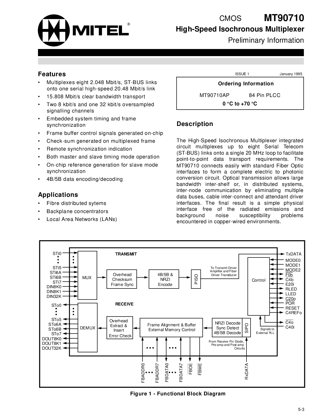 浏览型号MT90710AP的Datasheet PDF文件第5页
