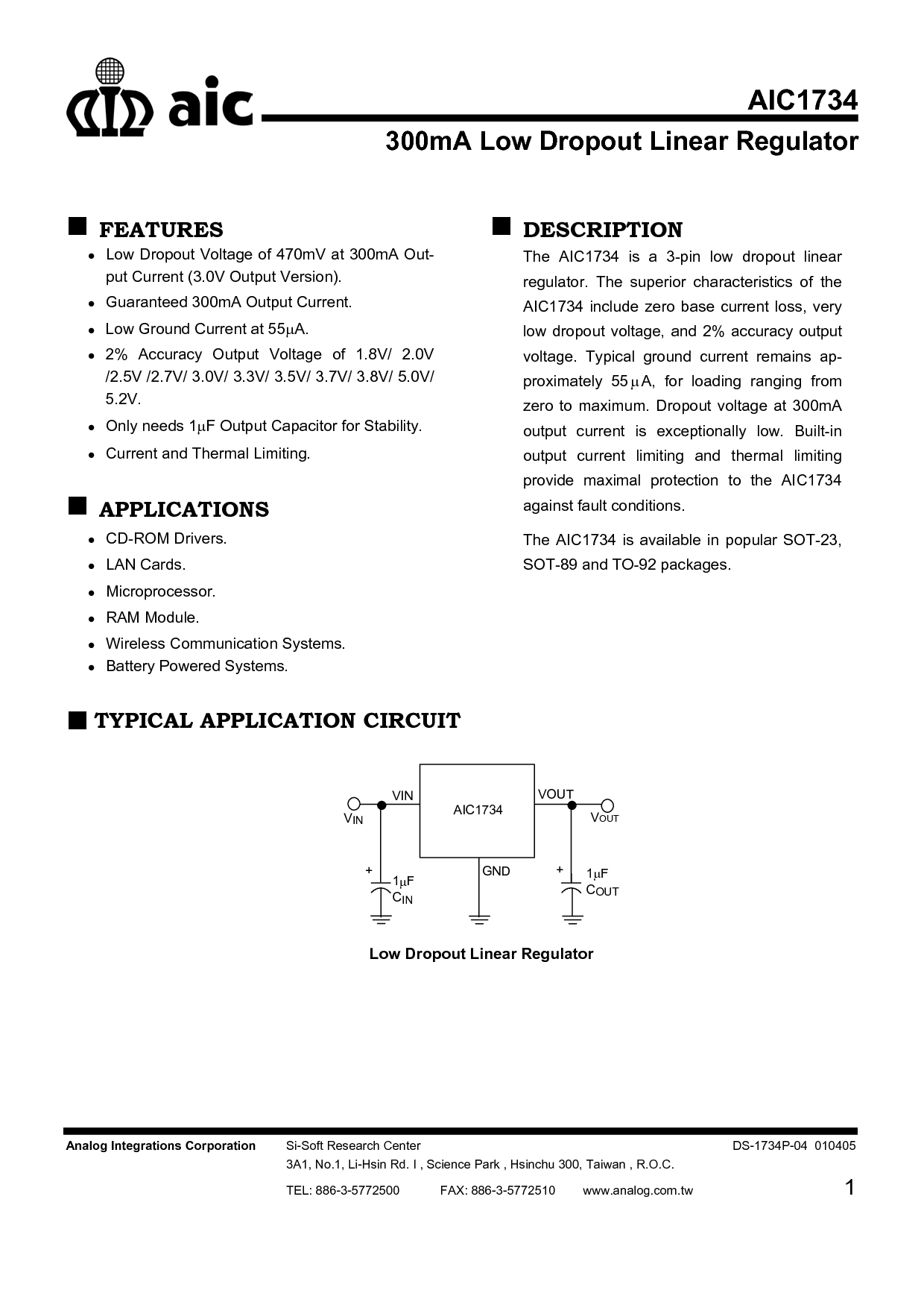 浏览型号AIC1734-50的Datasheet PDF文件第2页