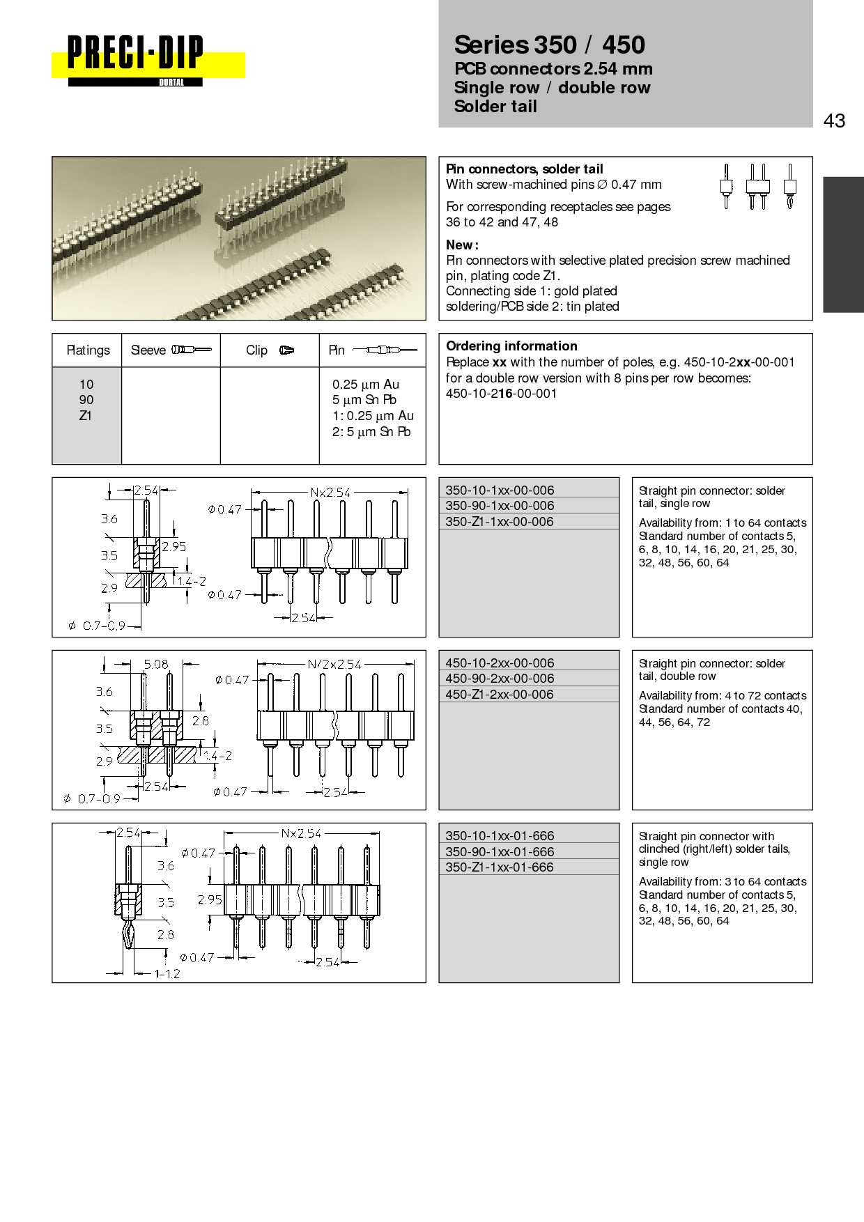 PCB connectors 2.54 mm Single row / double row Solder tail