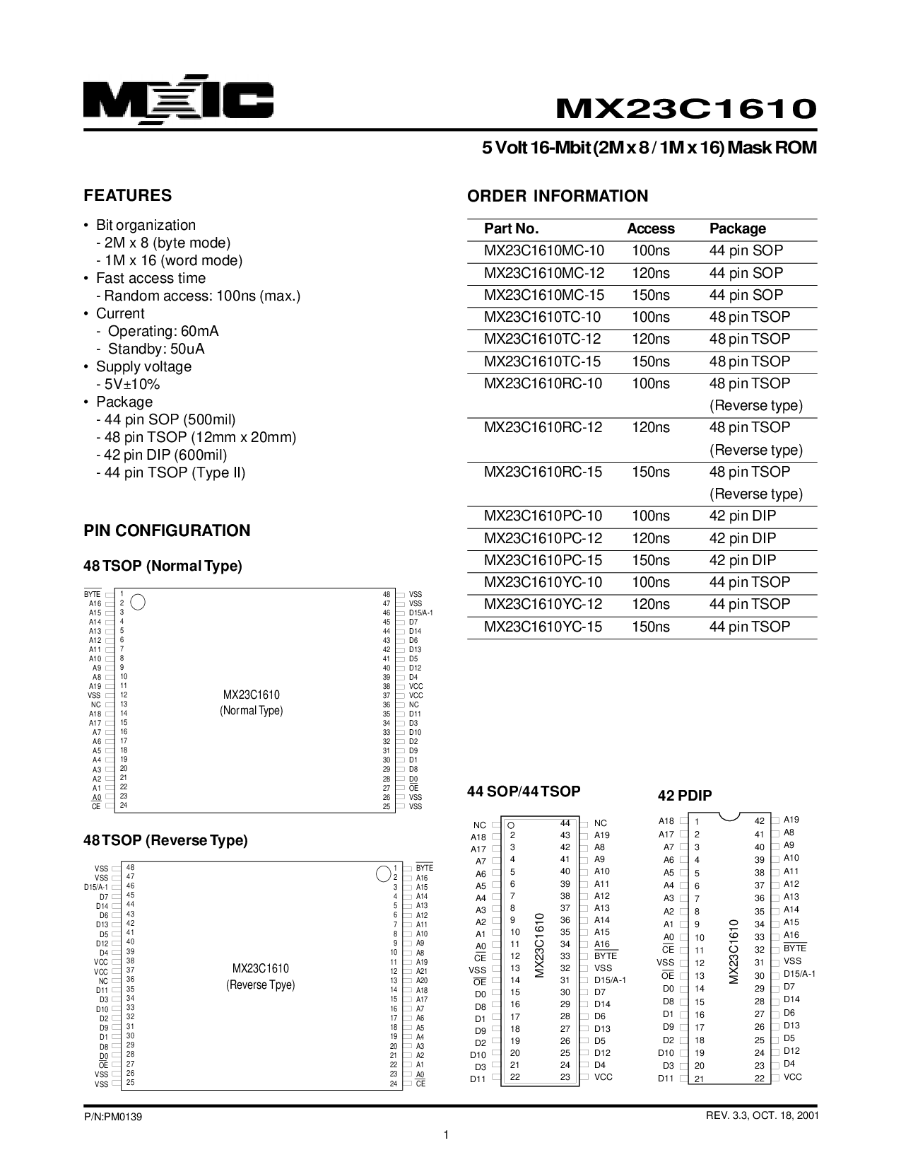 5 电压 16-mbit (2m x 8 / 1m x 16) 面具 rom