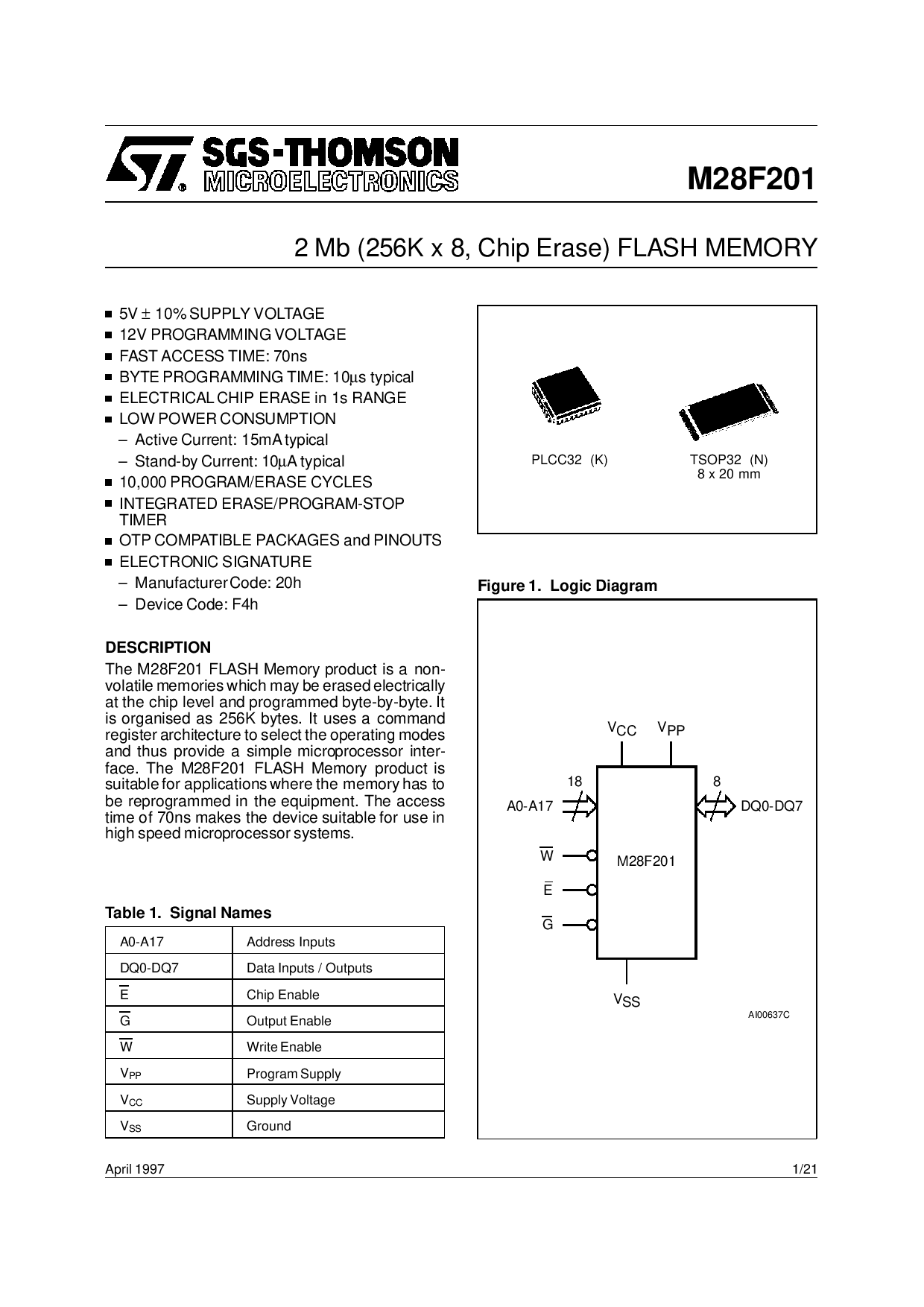 2 Mb 256K x 8, Chip Erase FLASH MEMORY