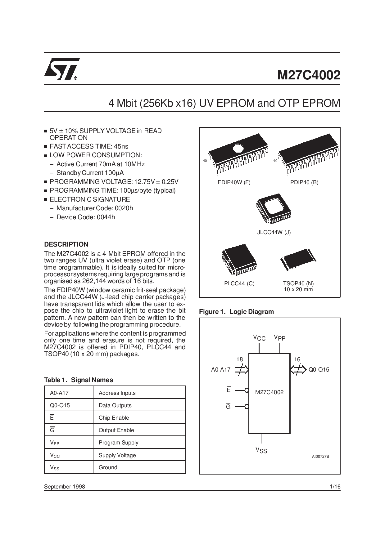 4 Mbit 256Kb x16 UV EPROM and OTP EPROM