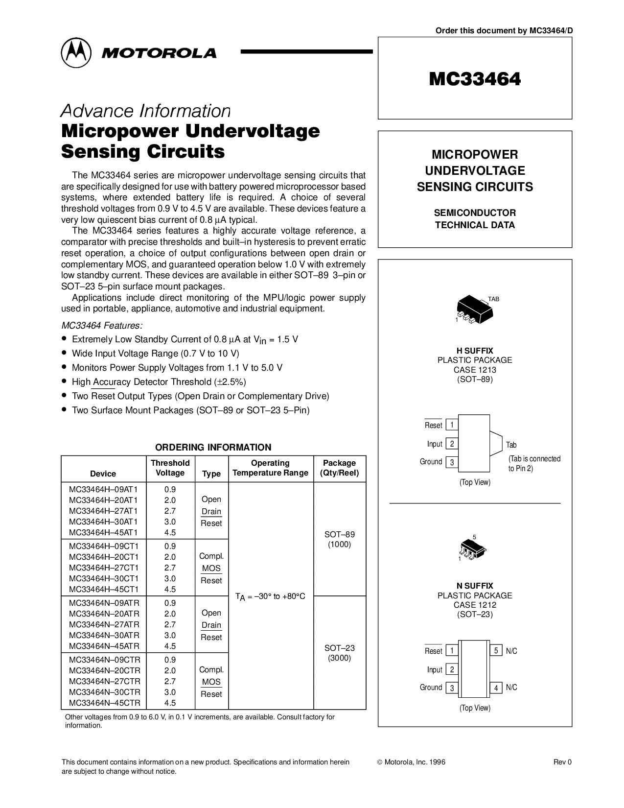 MICROPOWER UNDERVOLTAGE SENSING CIRCUITS