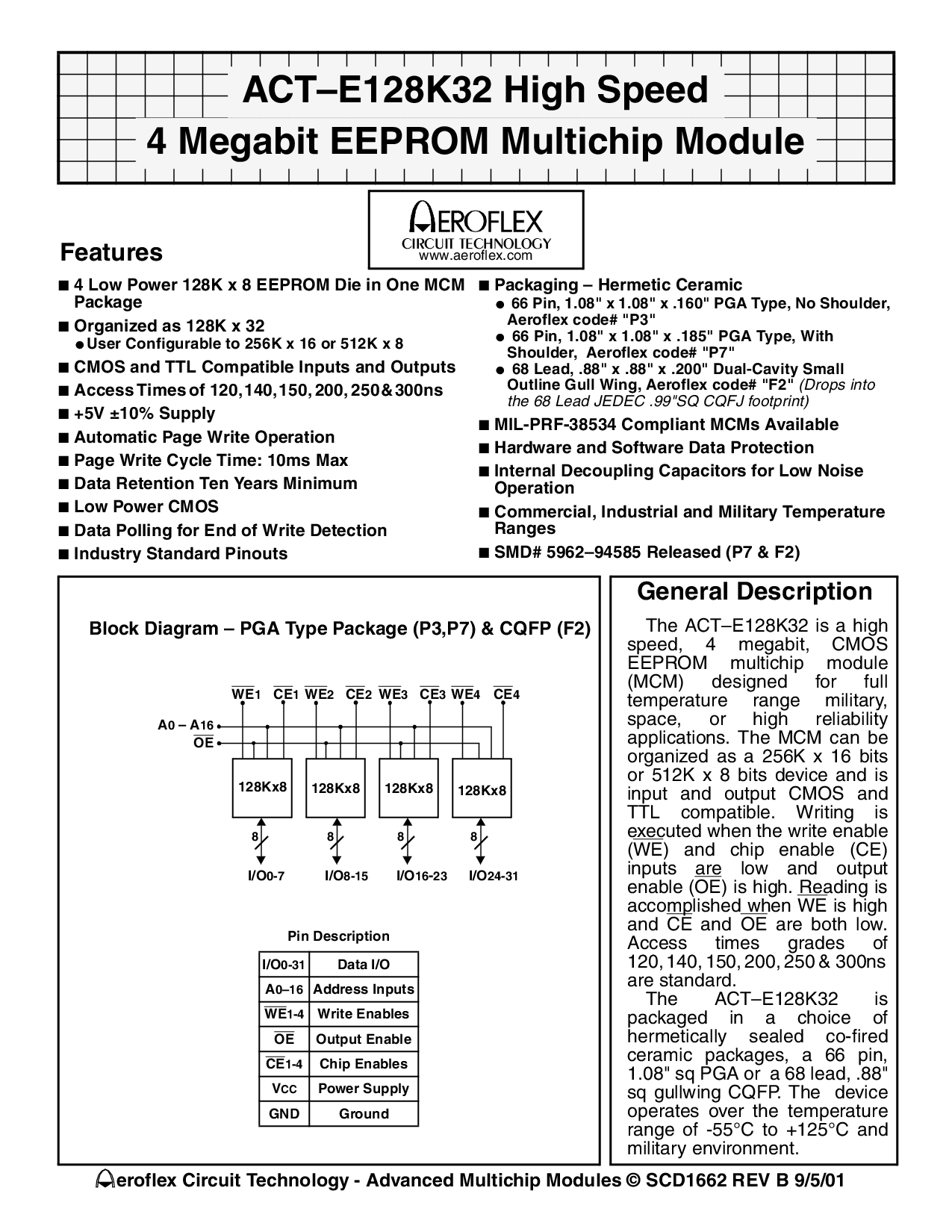 浏览型号ACT-E128K32N-250F2C的Datasheet PDF文件第2页