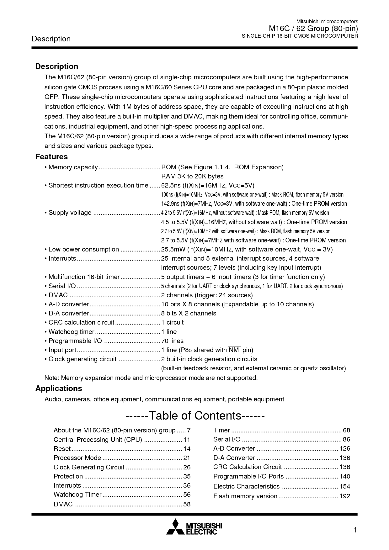 m16c / 62 集团 (80-管脚)