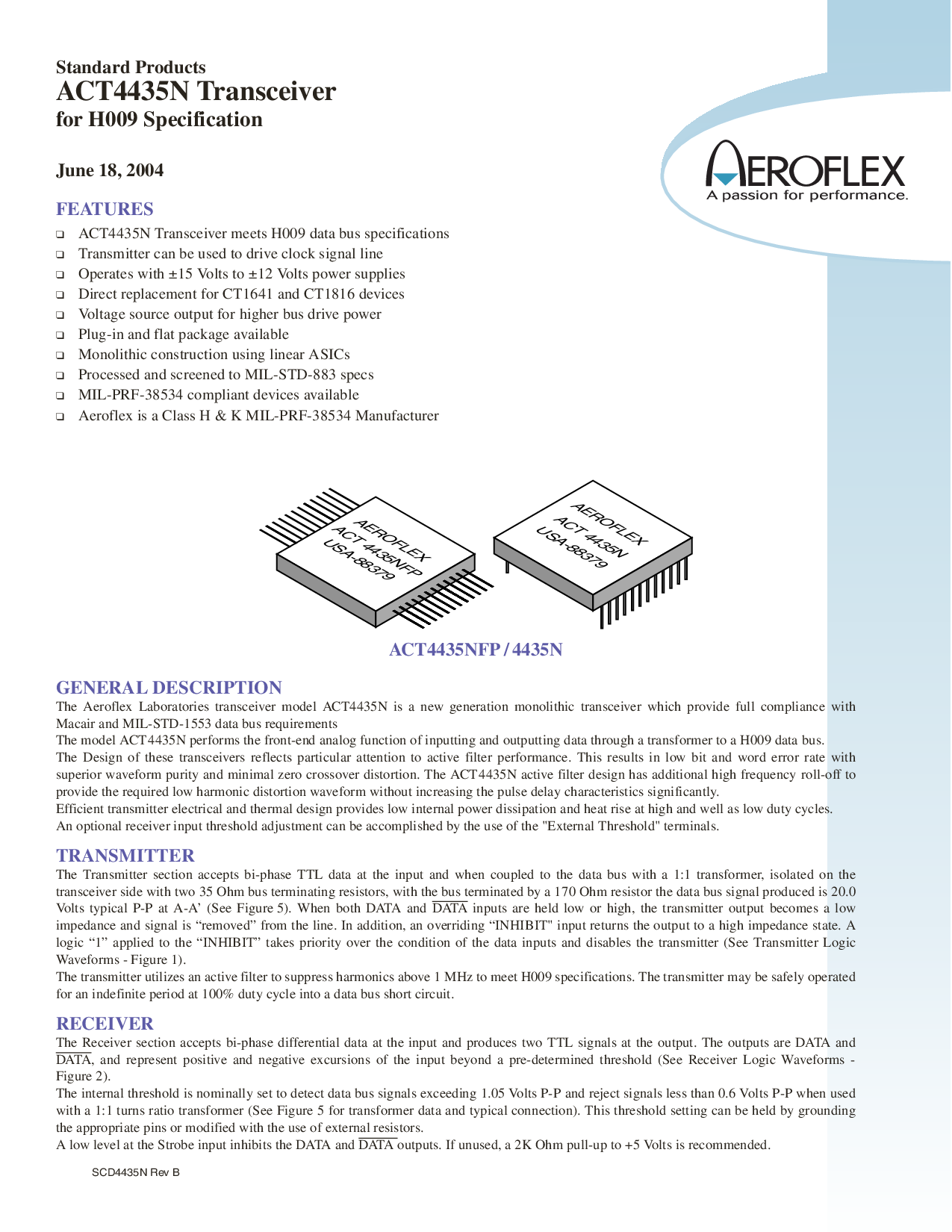这 aeroflex 实验室 收发器 型号 act4435n 是 一个 新建 世代 单片 收发器 哪个 提供 已满 合规性 with
