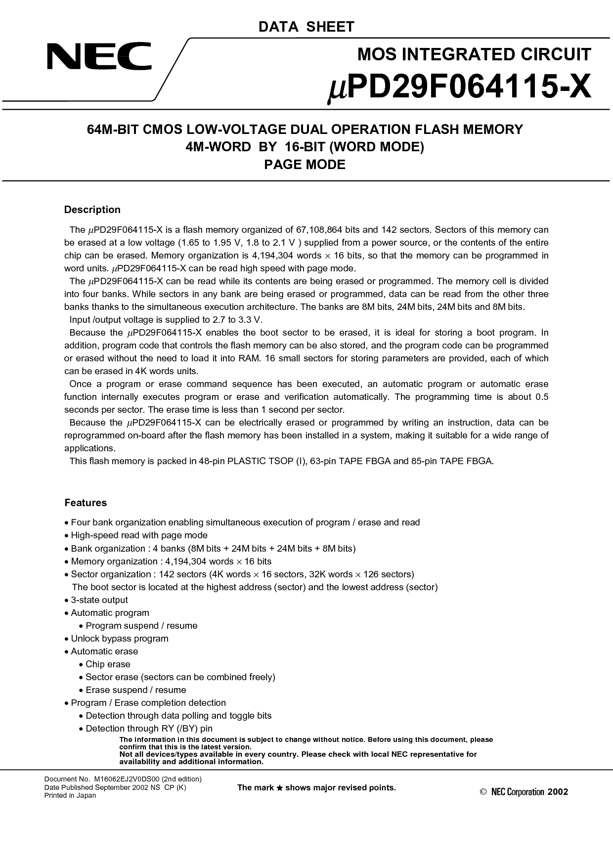 浏览型号UPD29F064115-X的Datasheet PDF文件第2页