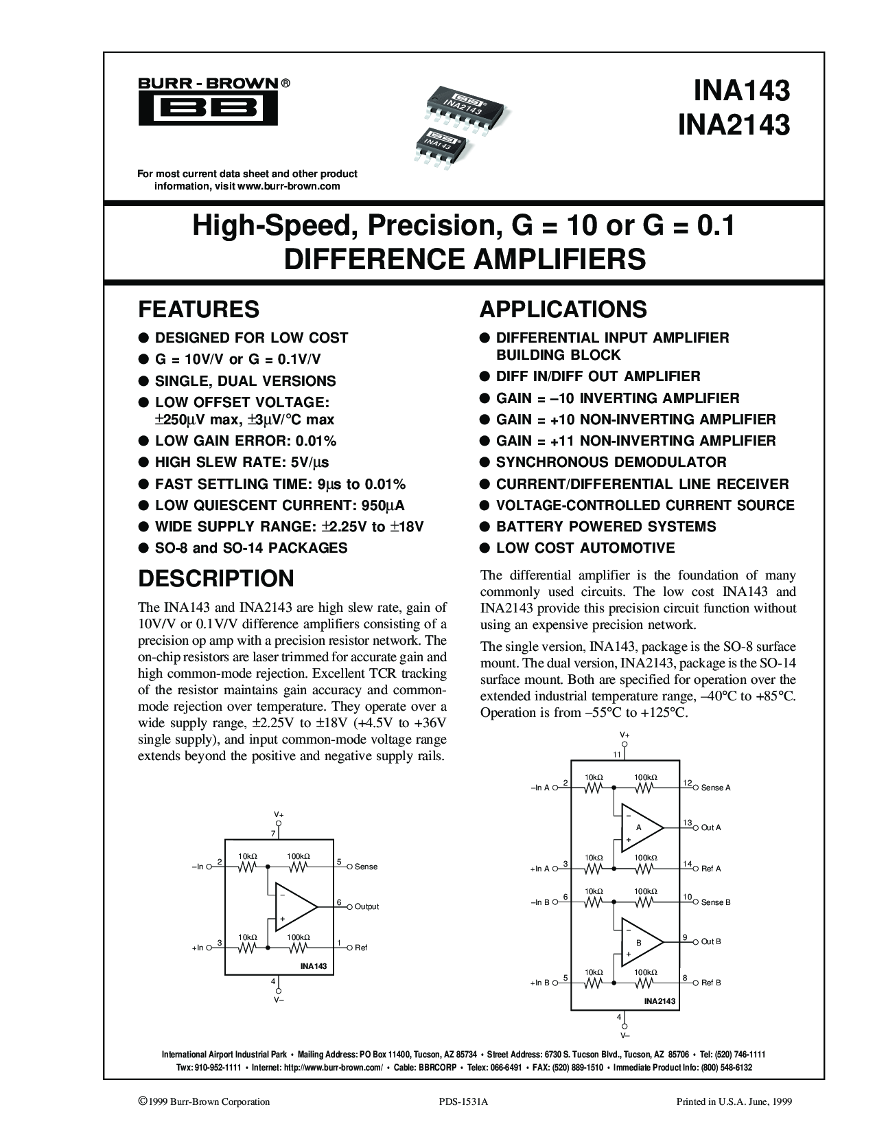 这 ina143 和 ina2143 是 高 回转 费率, 增益 的