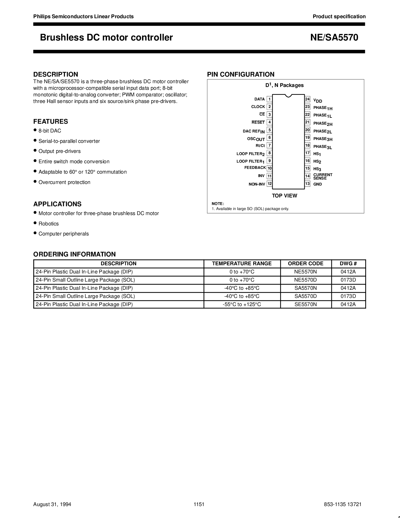 这 ne/sa/se5570 是 一个 三相 brushless 直流 电机 控制器