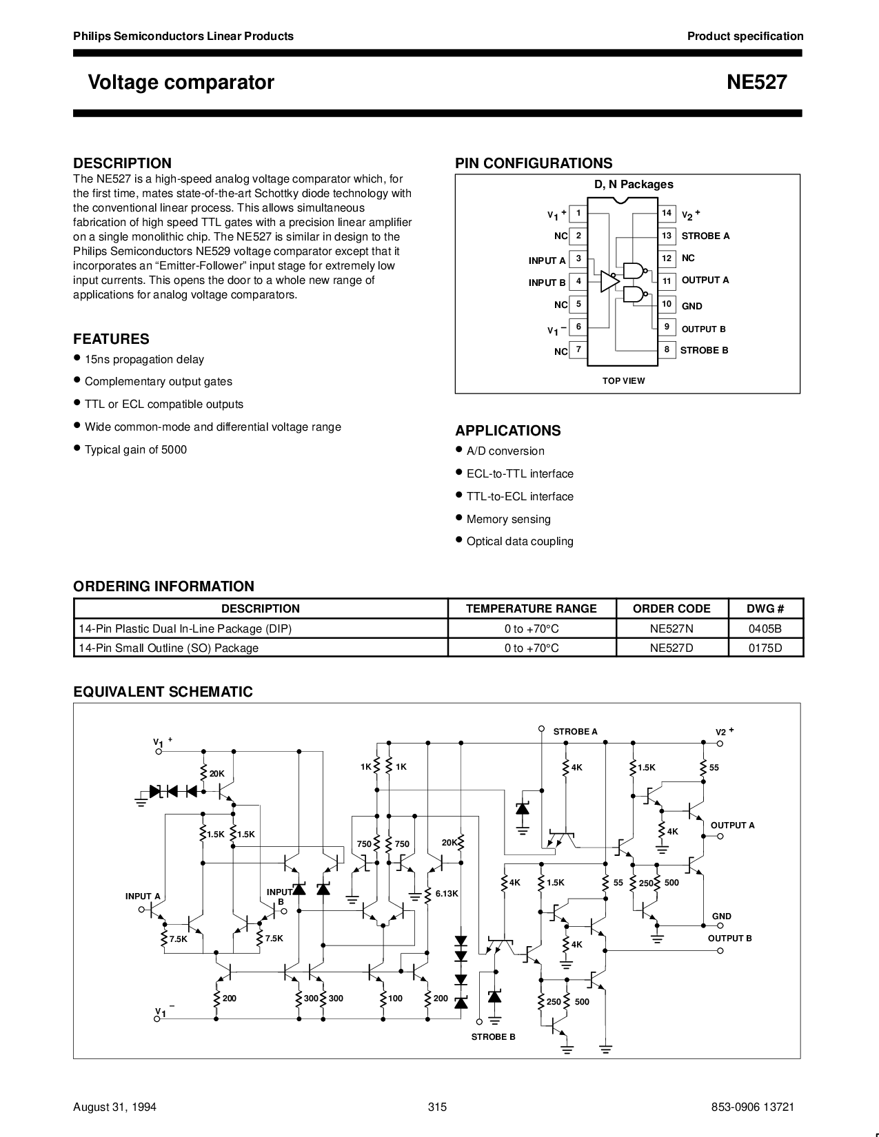 飞利浦 半导体 ne529 电压 比较器 除了 那 它