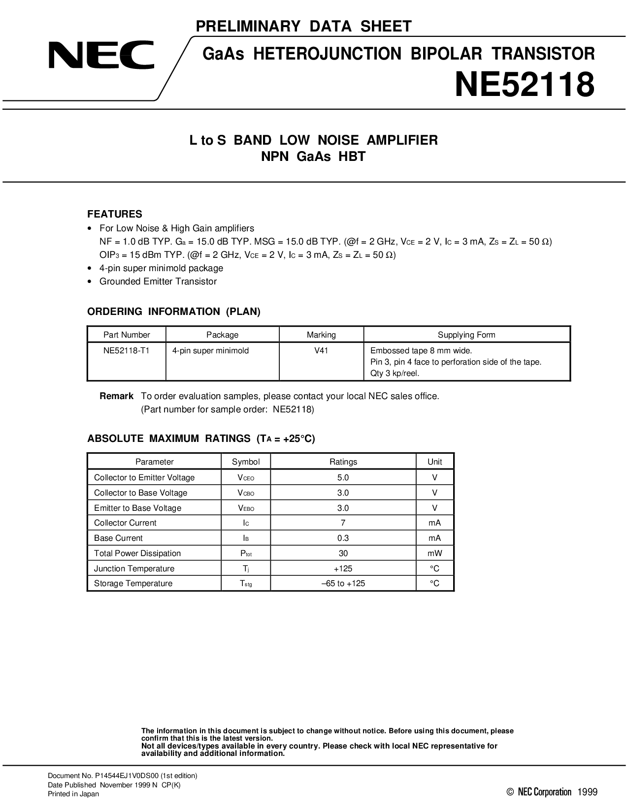 至 订单 评价 样品, 请 联系人 你的 本地 nec 销售 办公室.