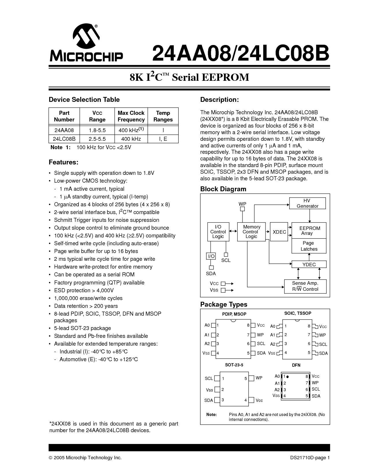 浏览型号24AA08-E/P的Datasheet PDF文件第2页