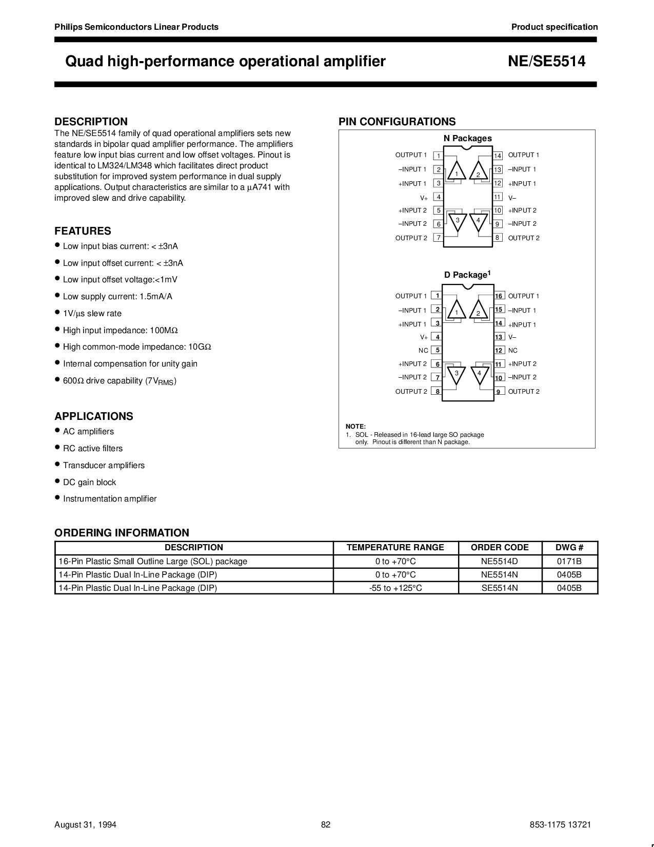 浏览型号NE5514D的Datasheet PDF文件第4页