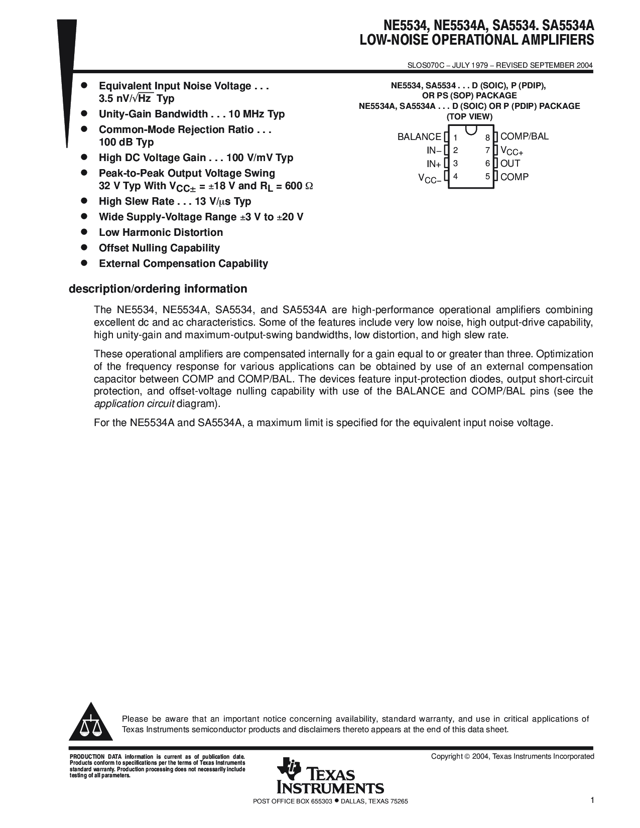 ne5534a, sa5534a ...d(soic) 或 p (pdip) 包装