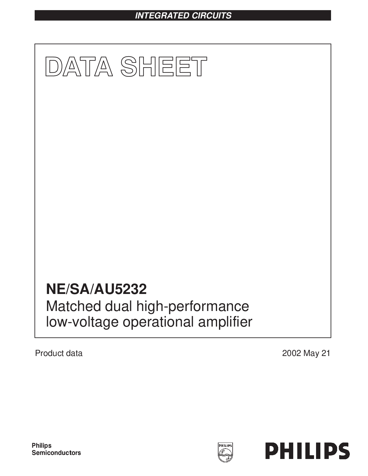 ne/sa/au5232 匹配 双 高性能 低电压 运营 放大器 产品 数据 2002 将 21 综合 电路 | |