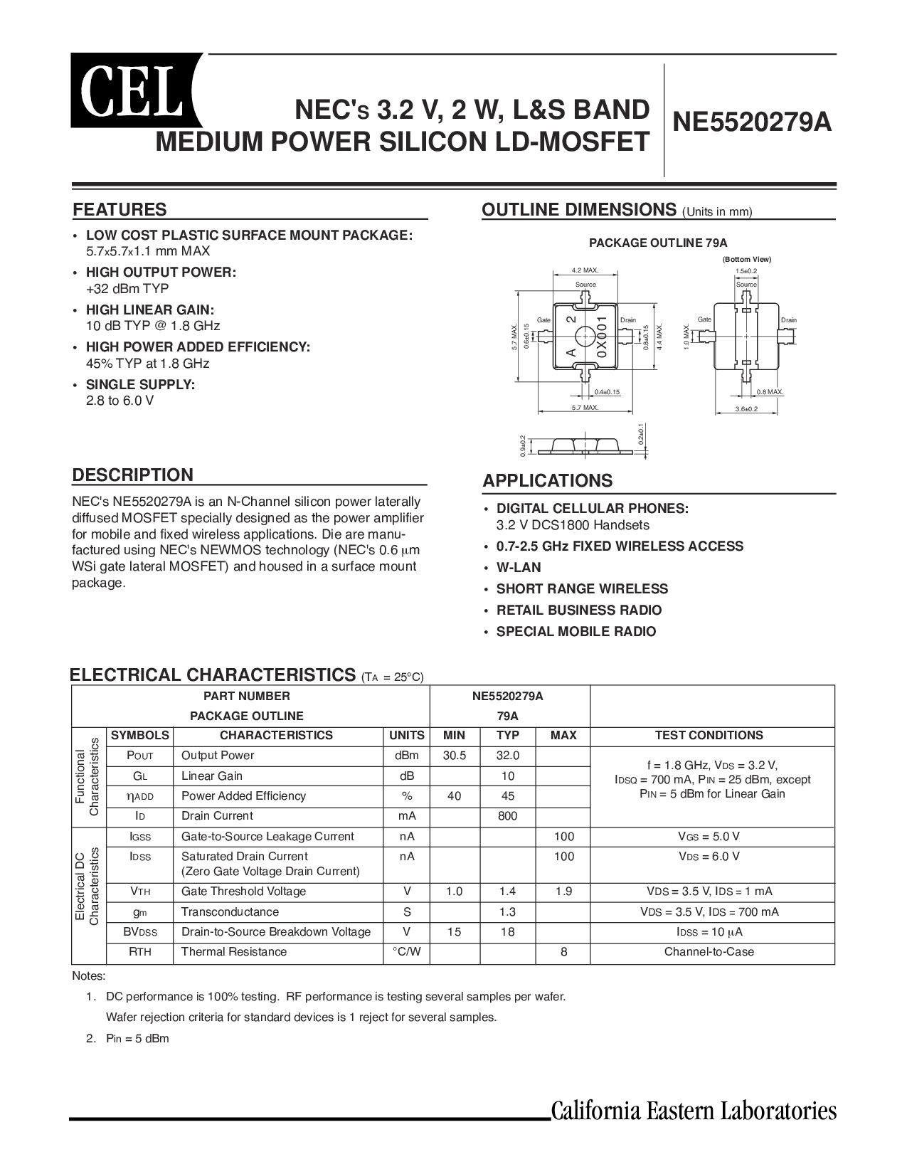 nec's ne5520279a 是 一个 n通道 硅 电源 laterally