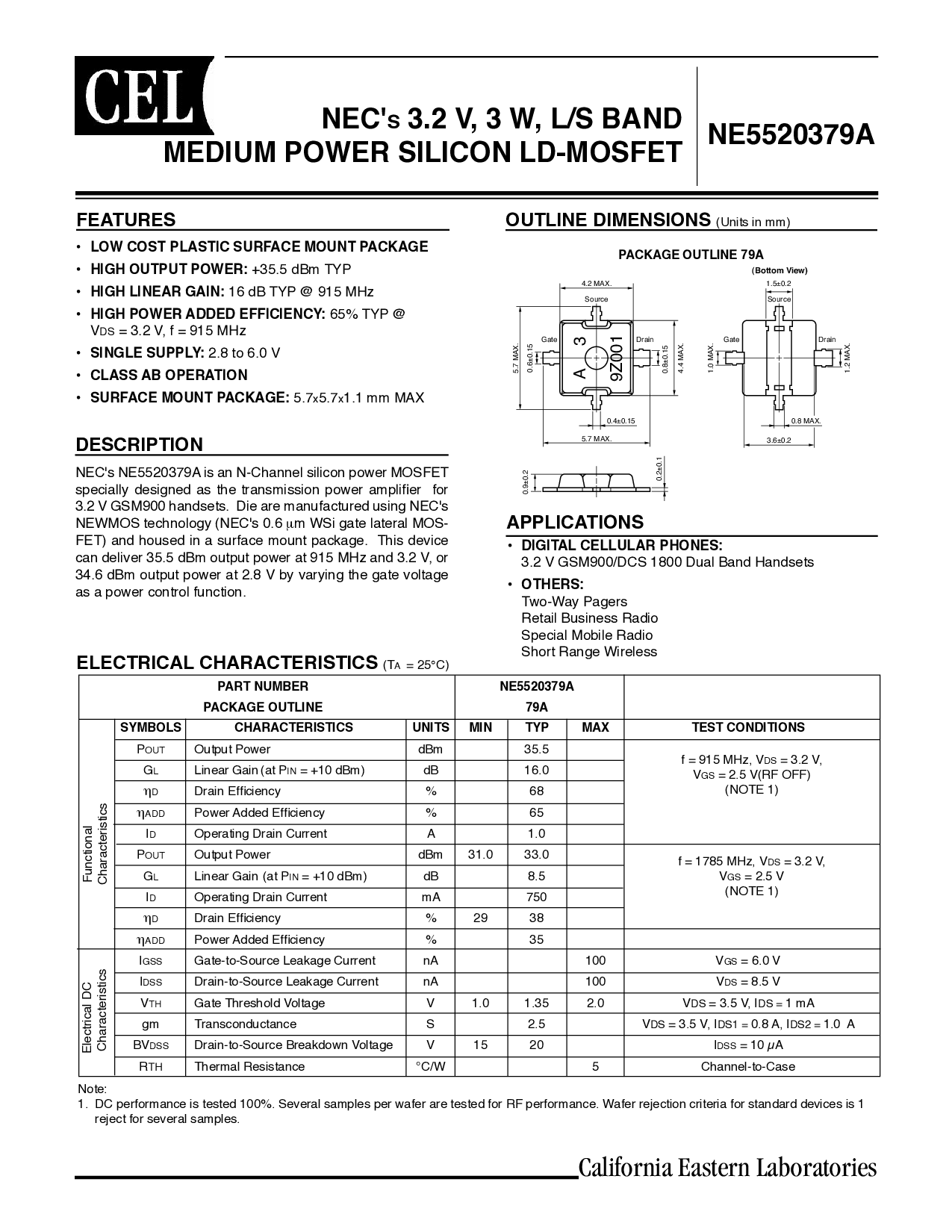 NECs 3.2V, 3W, L/S BAND MEDIUM POWER SILICON LD-MOSFET