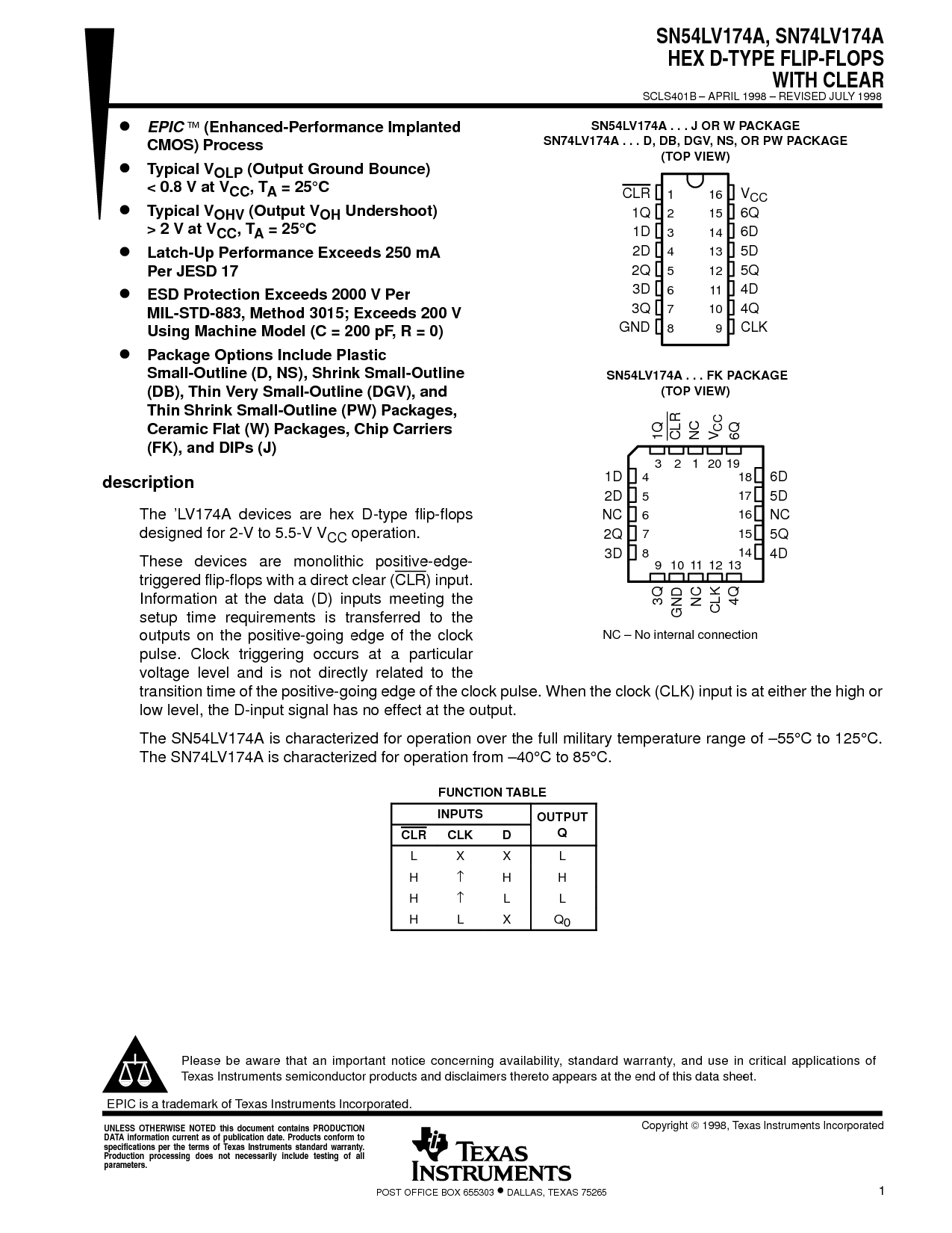 SN74LV174A . . . d, db, dgv, ns, 或 pw 包装