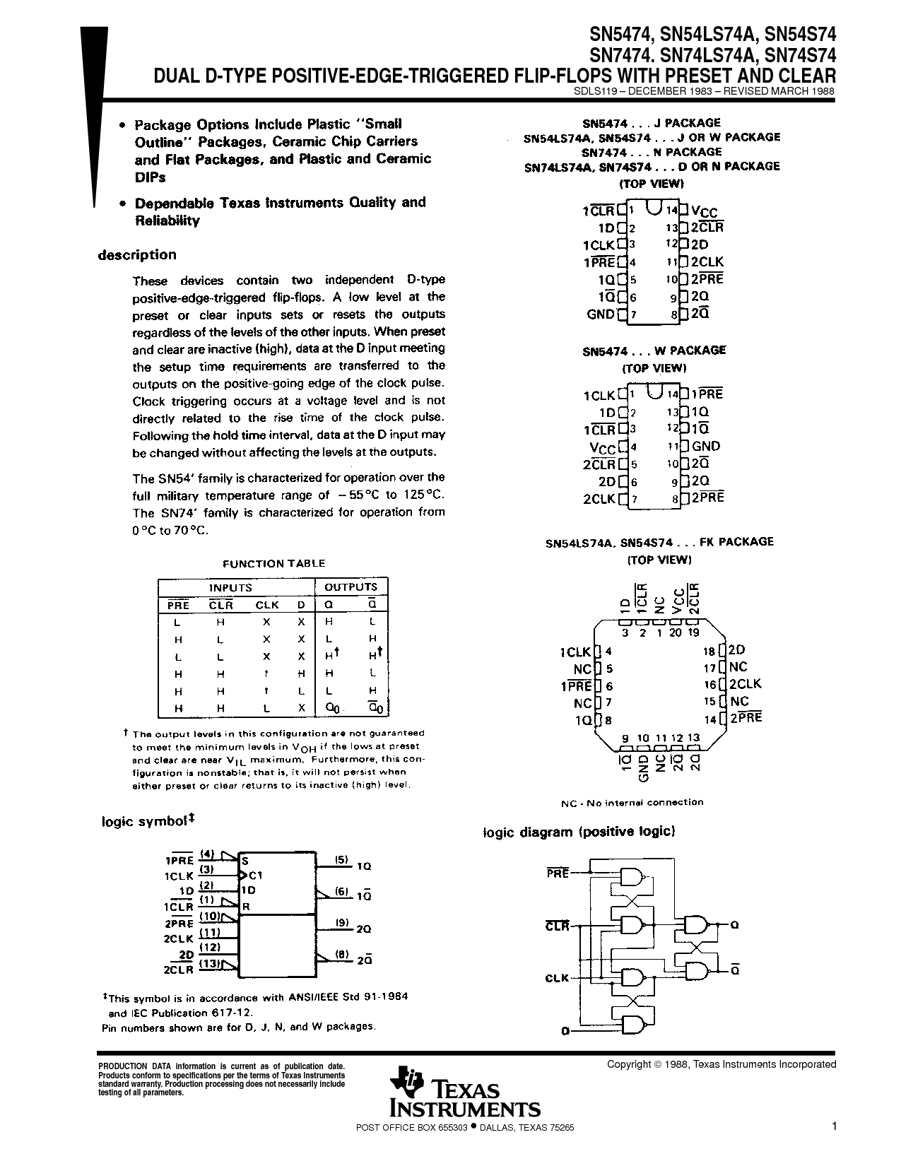 DUAL D-TYPE POSITIVE-EDGE-TRIGGERED FLIP-FLOPS WITH PRESET AND CLEAR