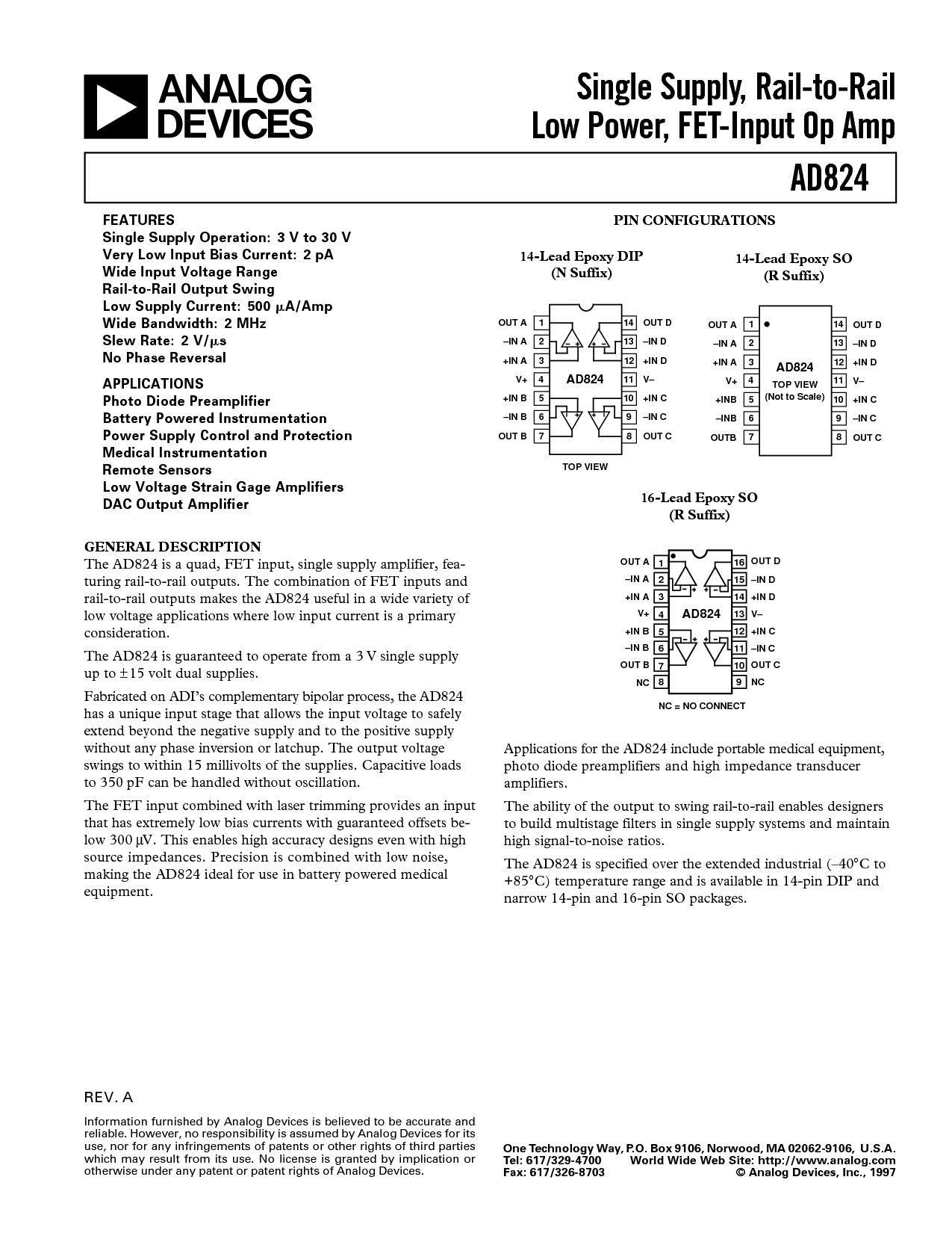 应用程序 用于 这 ad824 包括 便携式 医疗 设备,
