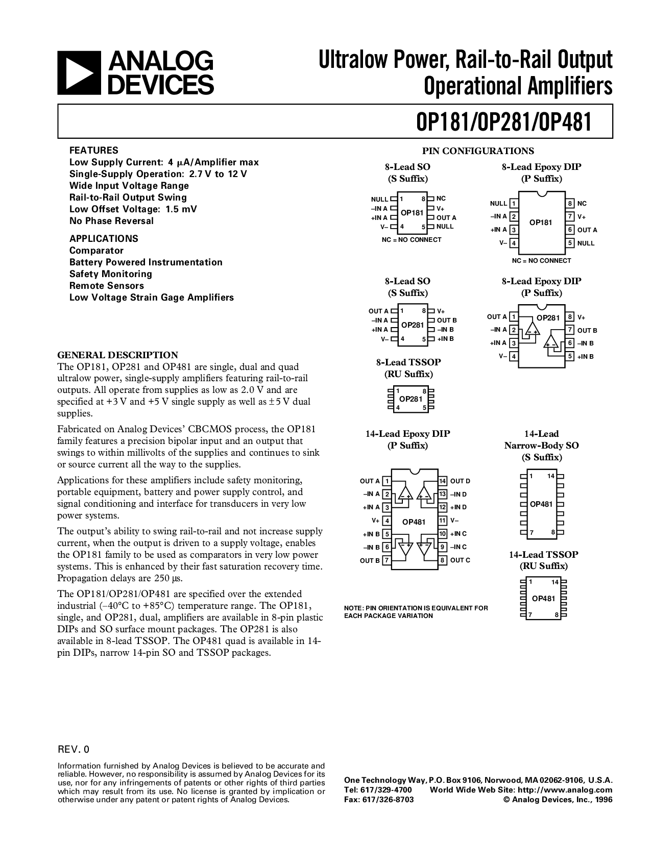 单独, 和 op281, 双, 放大器 是 可用 入点 8-管脚 塑料