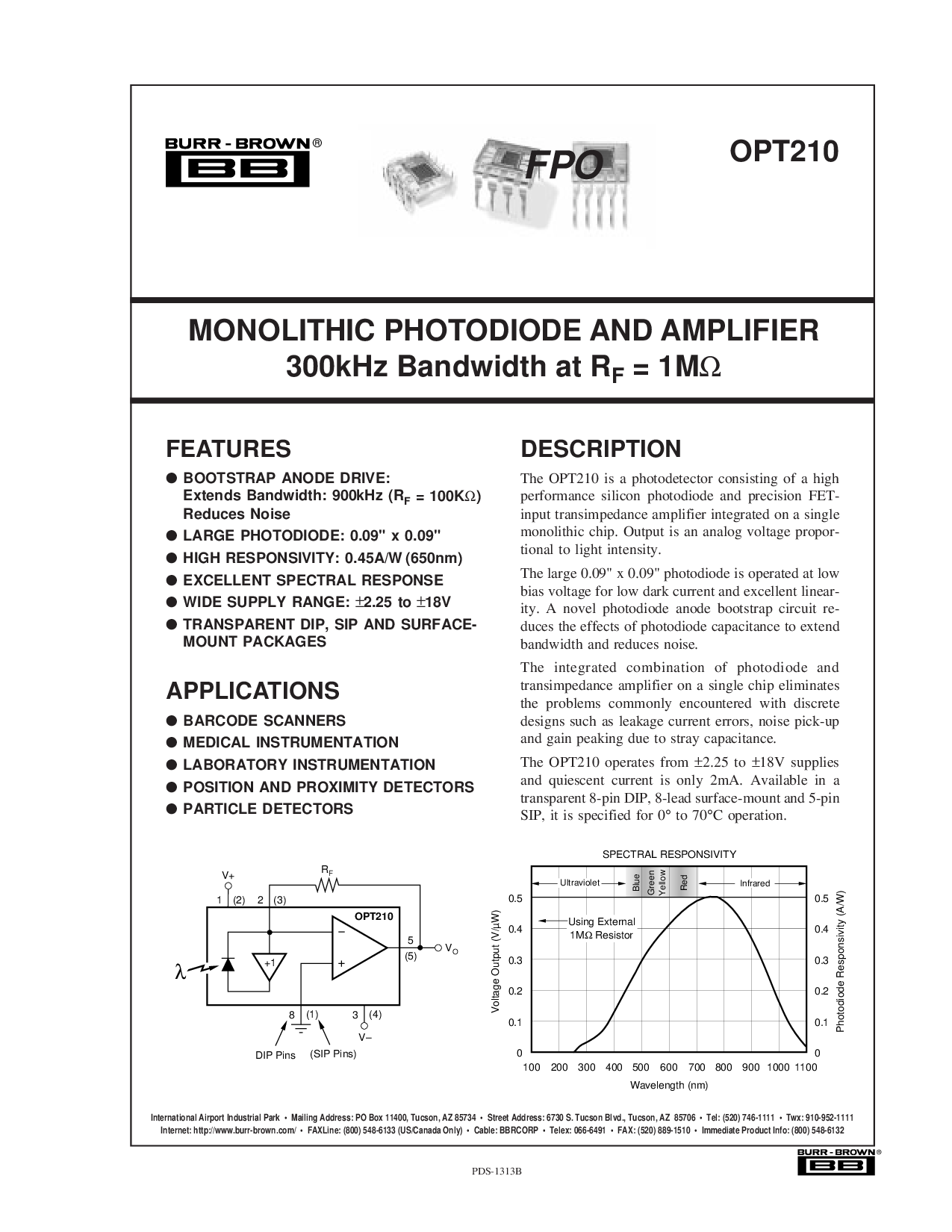 这 opt210 是 一个 光电探测器 由 的 一个 高