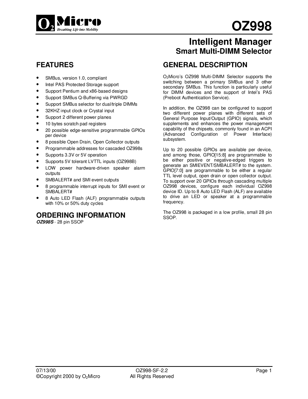 浏览型号OZ998S的Datasheet PDF文件第2页