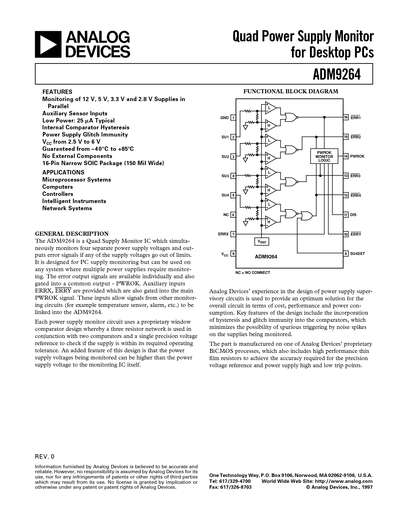 这 adm9264 是 一个 四边形 供应 显示器 集成电路 哪个 simulta-