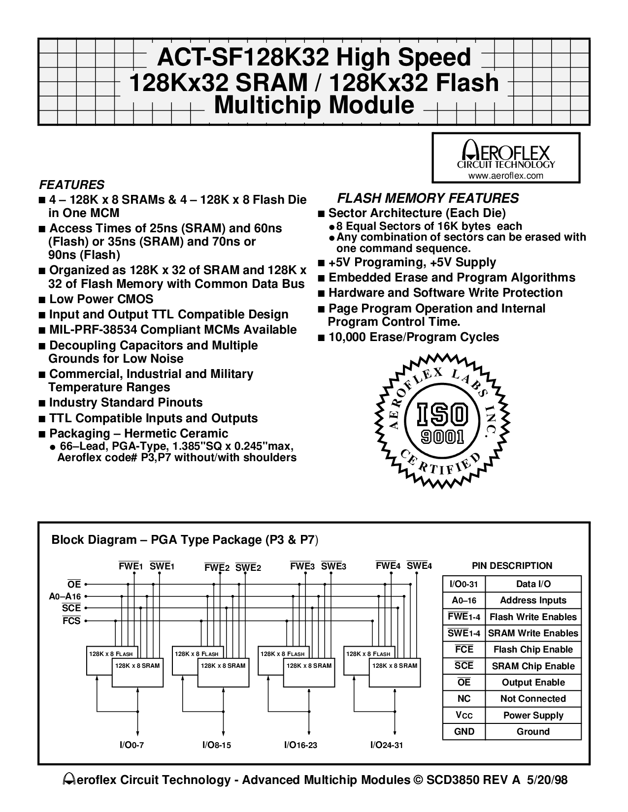 ACT-SF128K32 High Speed 128Kx32 SRAM / 128Kx32 Flash Multichip Module