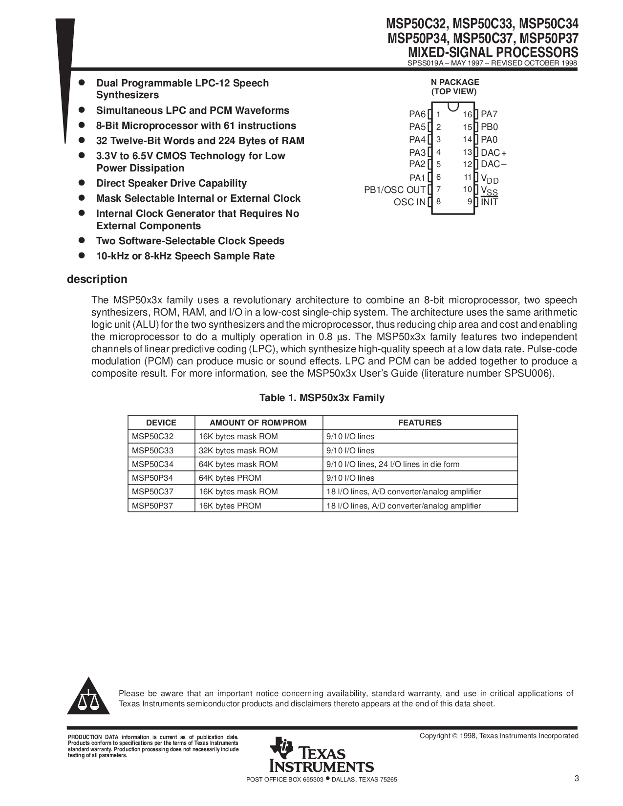 MSP50C33 32k 字节数 面具 rom 9/10 我/o 线条