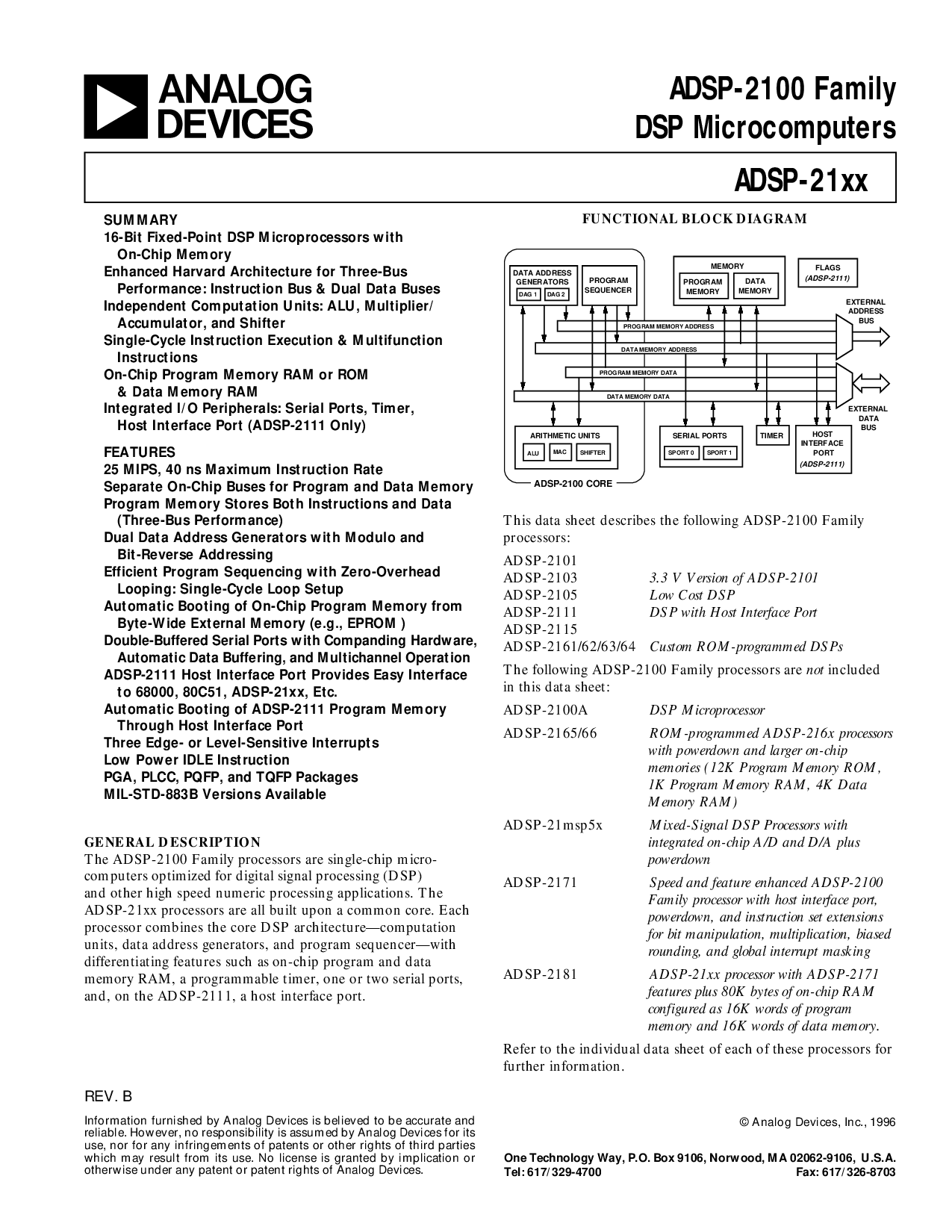 adsp-21xx 处理器 是 全部 已建成 在 一个 普通 核心. 每个