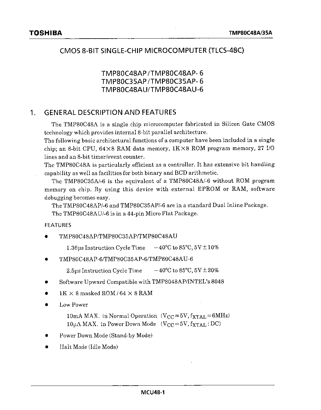 CMOS 8-BIT SINGLE-CHIP MICROCOMPUTER (TLCS-48C)