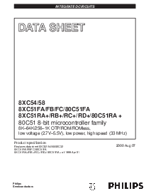 80C51 8-bit microcontroller family 8K.64K/256.1K OTP/ROM/ROMless, low voltage 2.7V.5.5V, low power, high speed 33 MHz