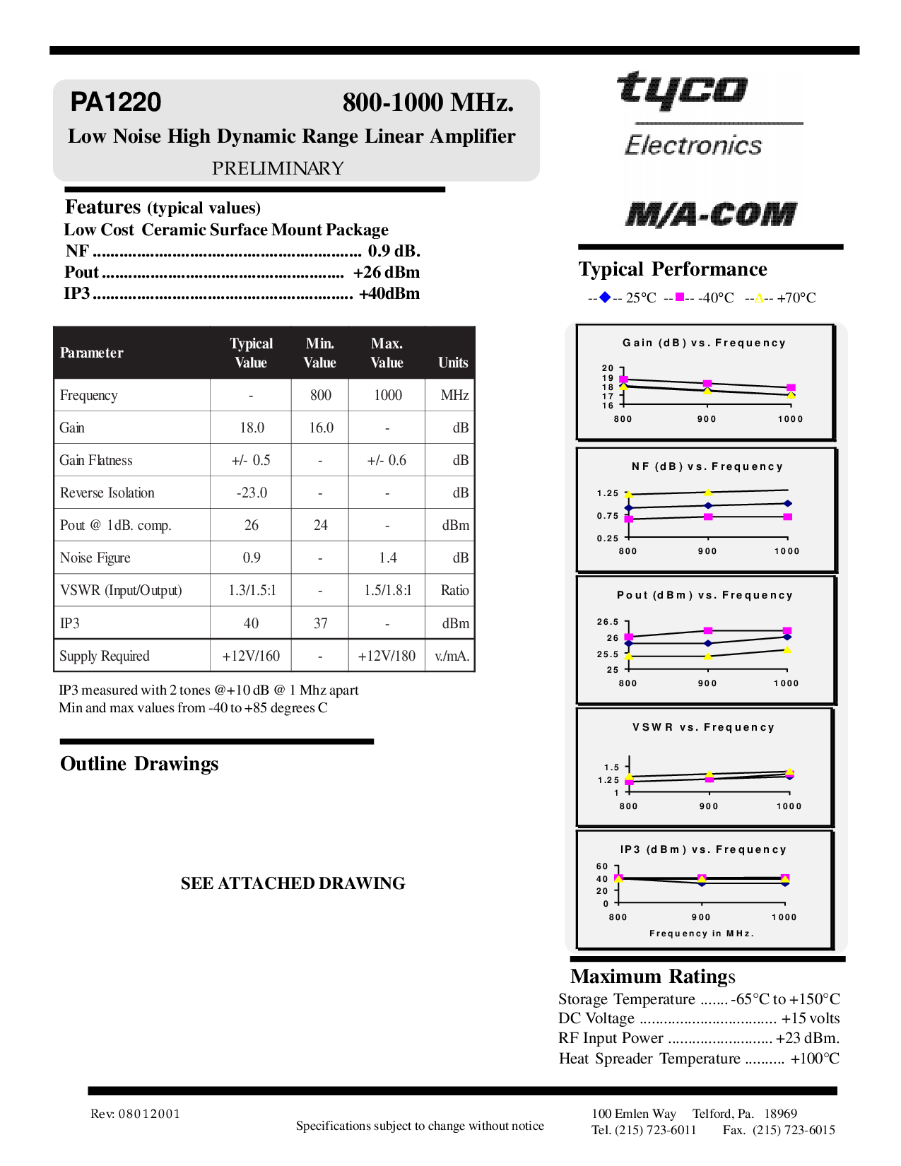 ip3 已测量 与 2 音调 @+10 db @ 1 mhz 分开