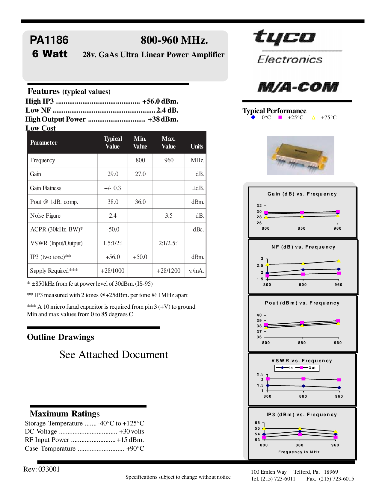 ** ip3 已测量 与 2 音调 @+25dbm. 按 音调 @ 1mhz 分开