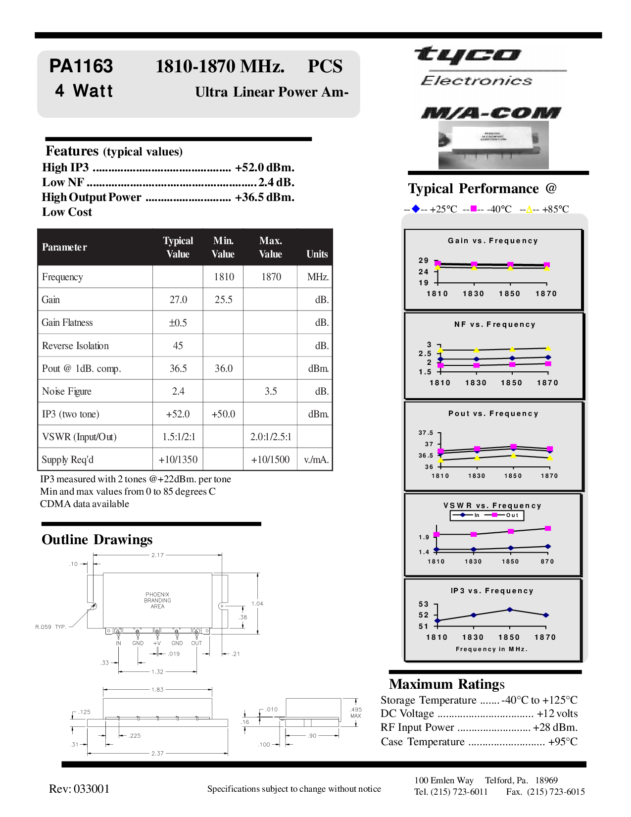 ip3 已测量 与 2 音调 @+22dbm. 按 音调