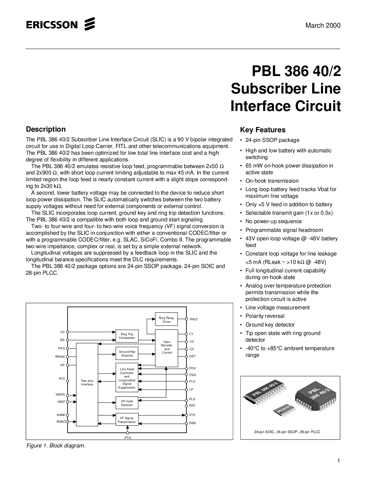 这 pbl 386 40/2 订户 线 接口 电路 (slic) 是 一个 90 v 双极性 综合