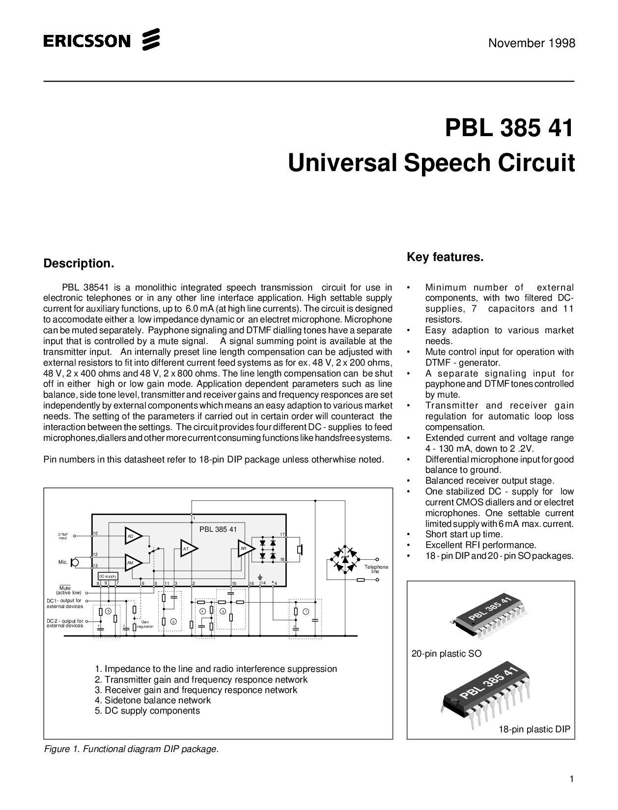 pbl 38541 是 一个 单片 综合 演讲 变速器 电路 用于 使用 入点