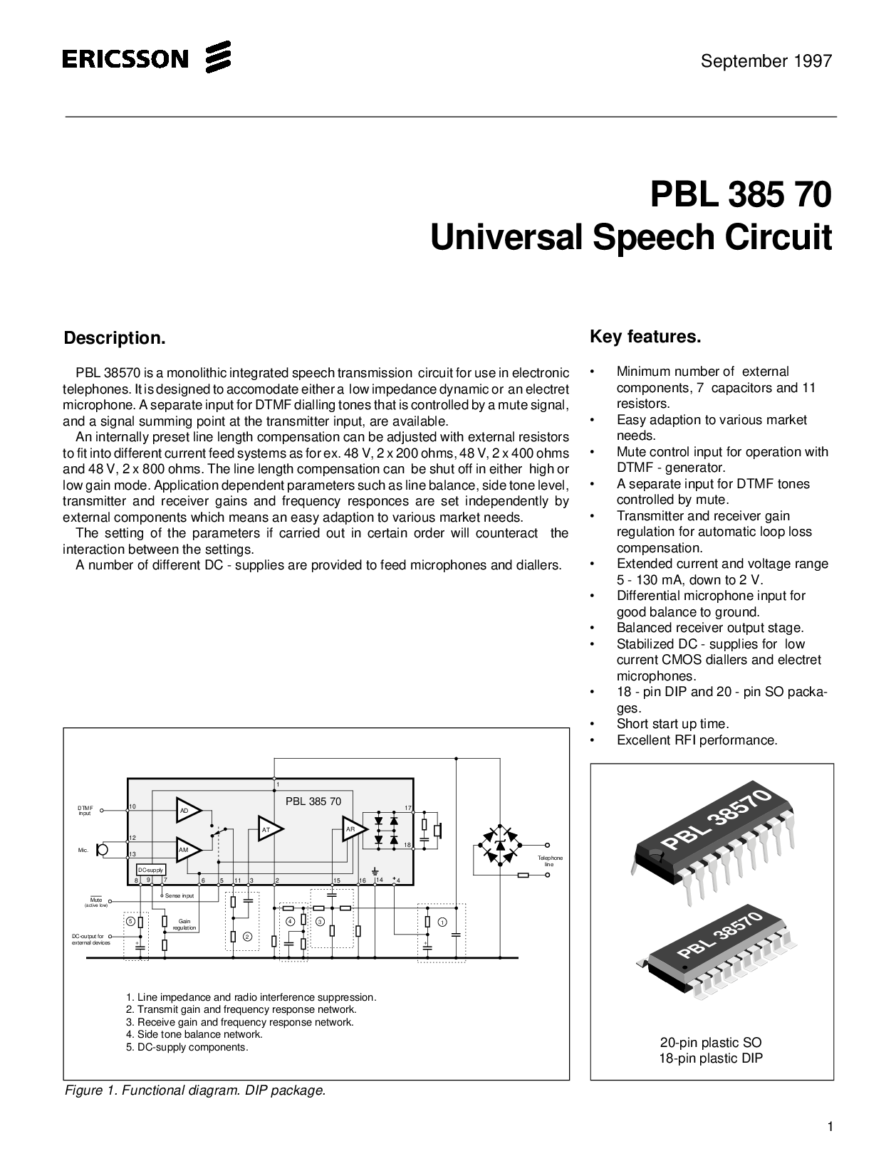 pbl 38570 是 一个 单片 综合 演讲 变速器 电路 用于 使用 入点 电子