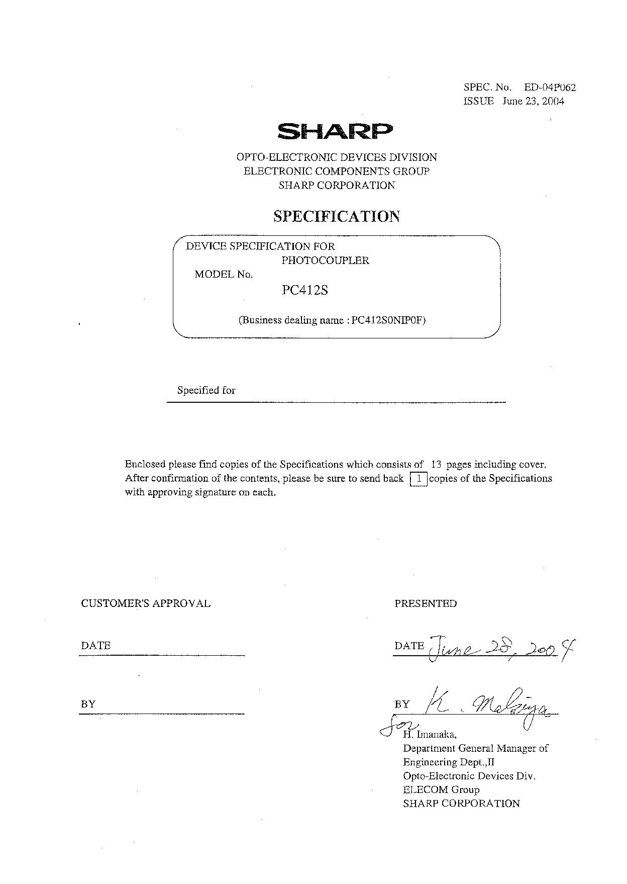 DEVICE SPECIFICATION FOR PHOTOCOUPLER