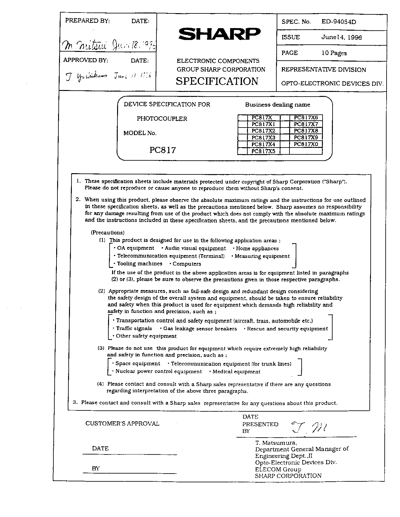 DEVICE SPECIFICATION FOR PHOTOCOUPLER