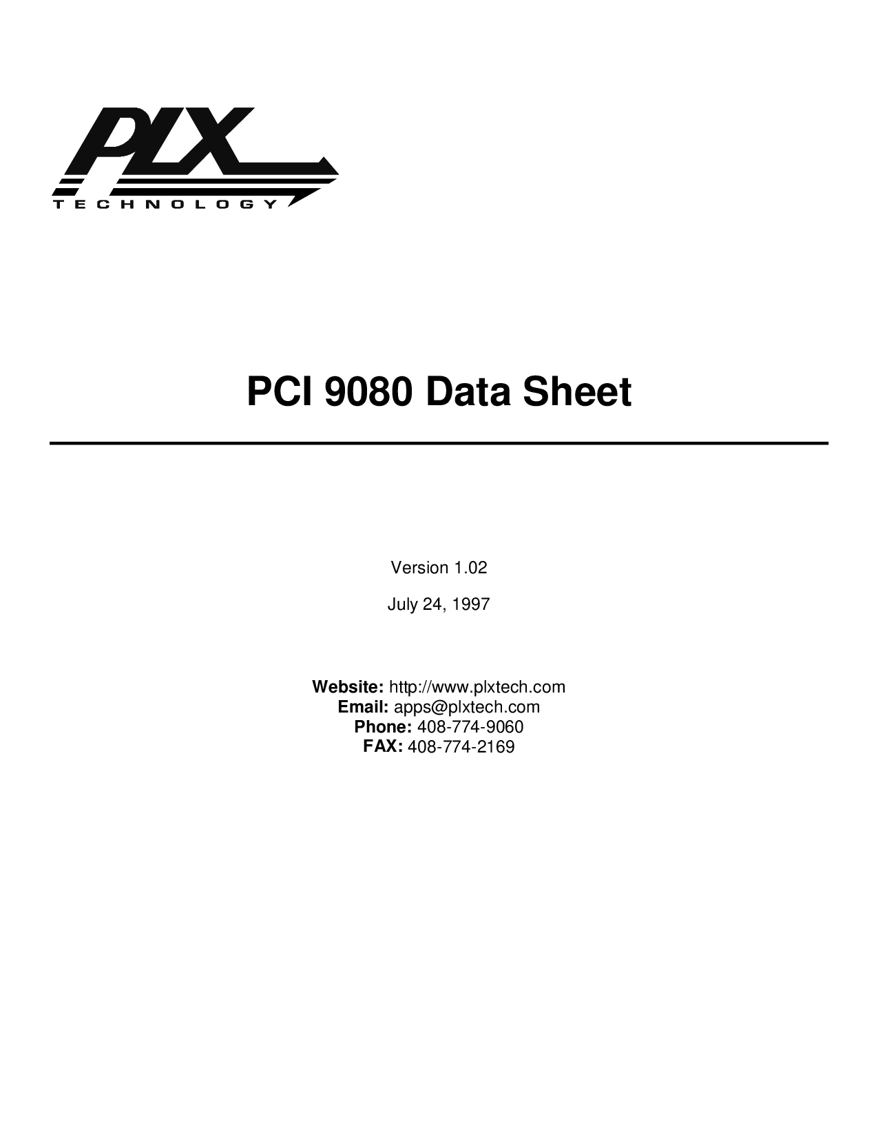 pci 9080 数据 工作表 版本 1.02 july 24, 1997 网站: http://www.plxtech.com 电子邮件: apps@plxtech.com 电话: 408-774-9060 传真: 408-774-2169 | |