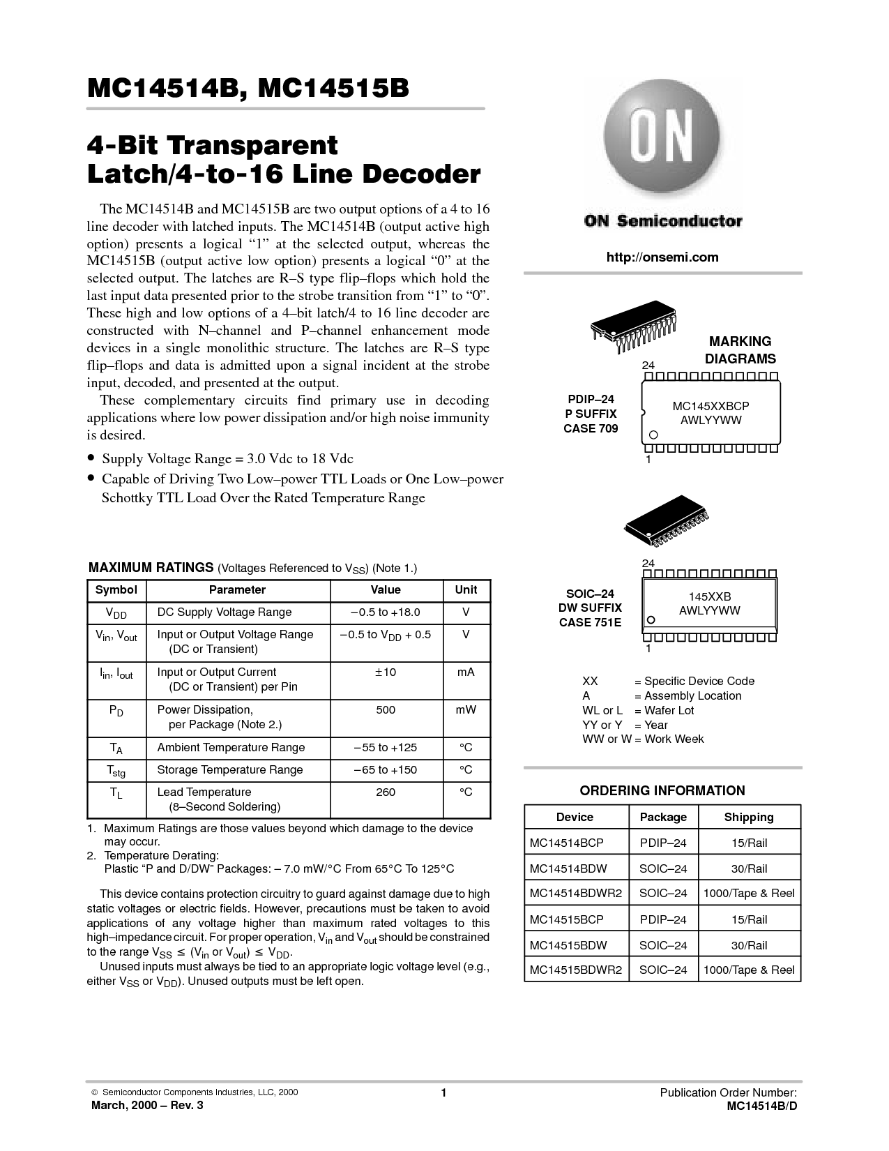 浏览型号MC14514BDW的Datasheet PDF文件第3页