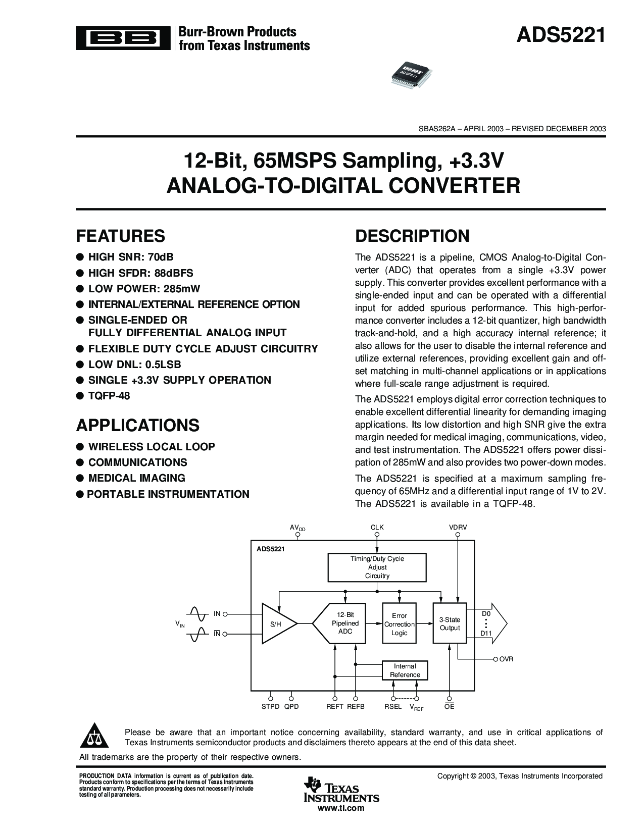 这 ads5221 是 可用 入点 一个 tqfp-48.