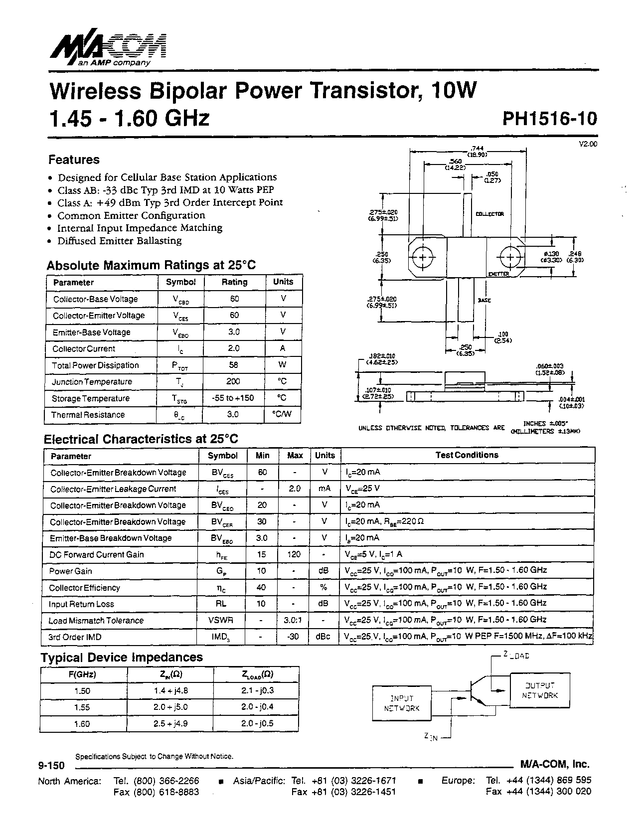 Wireless Bipolar Power Transistor, 1OW 1.45 - 1.60 GHz