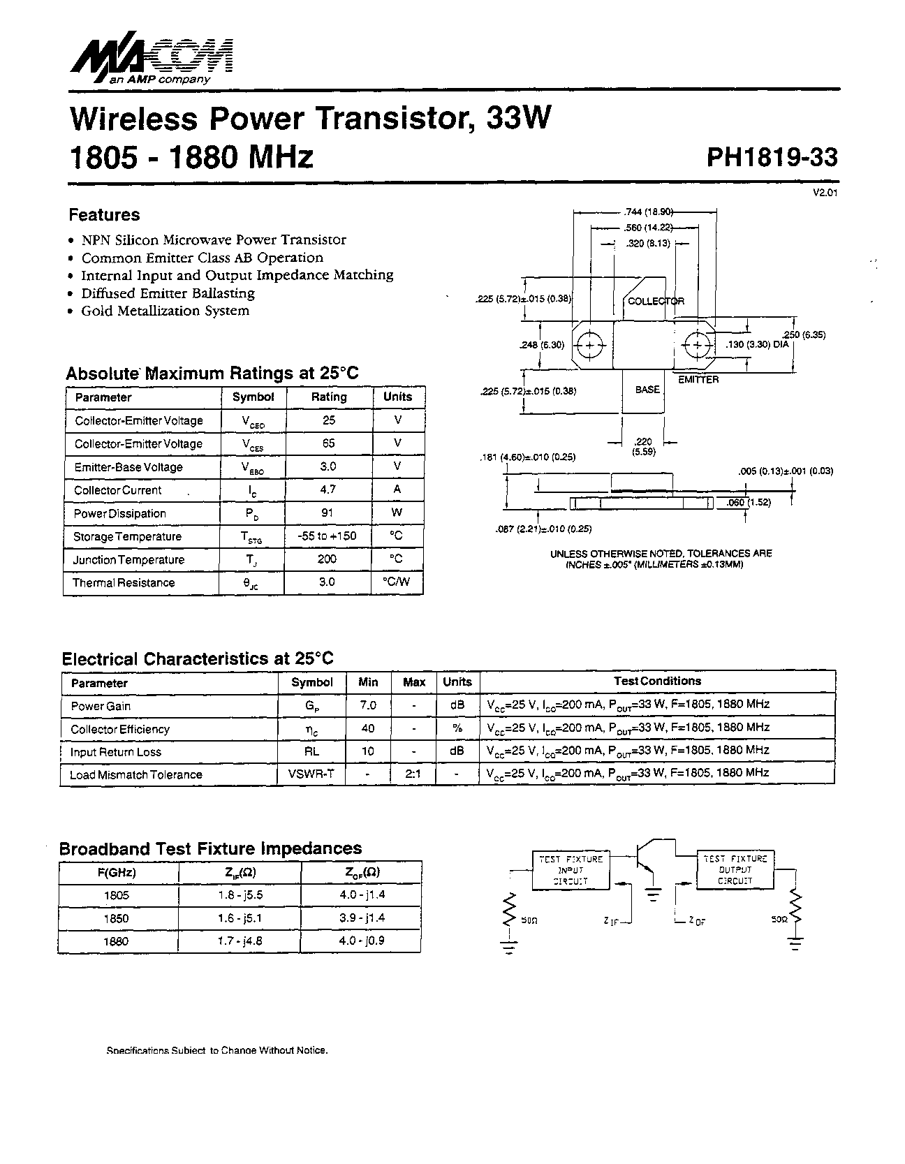 Wireless Power Transistor, 33W 1805 - 1880 MHz
