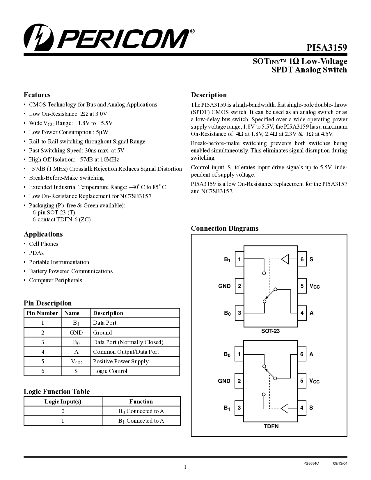pi5a3159 是 一个 低 导通电阻 更换 用于 这 pi5a3157