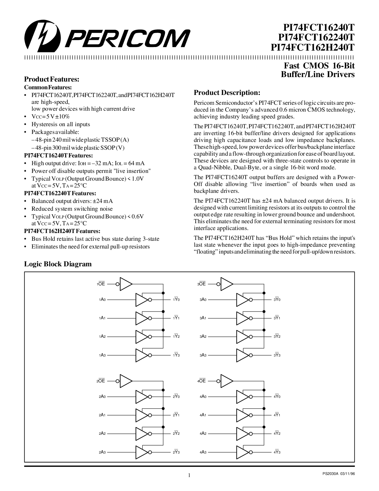 • pi74fct16240t, pi74fct162240t, 和 pi74fct162h240t