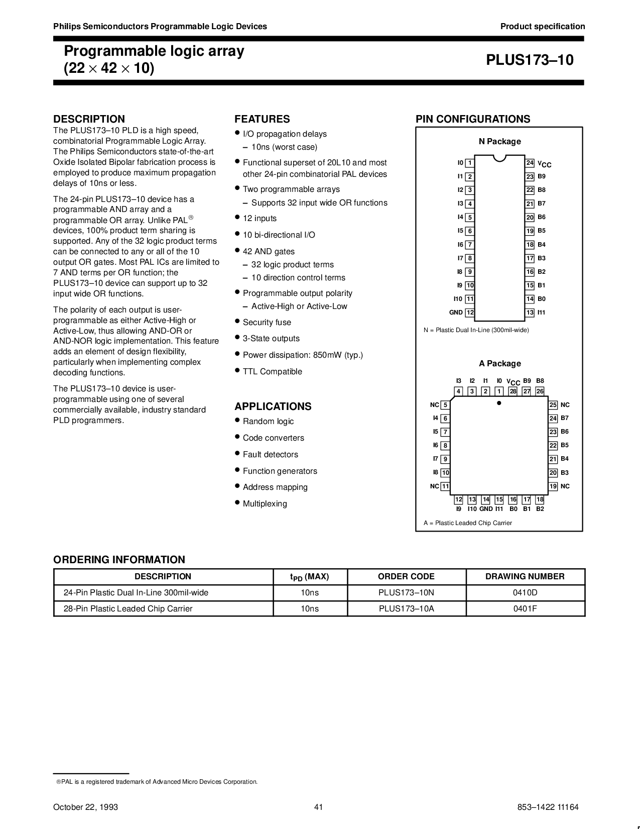 october 22, 1993 853–1422 11164