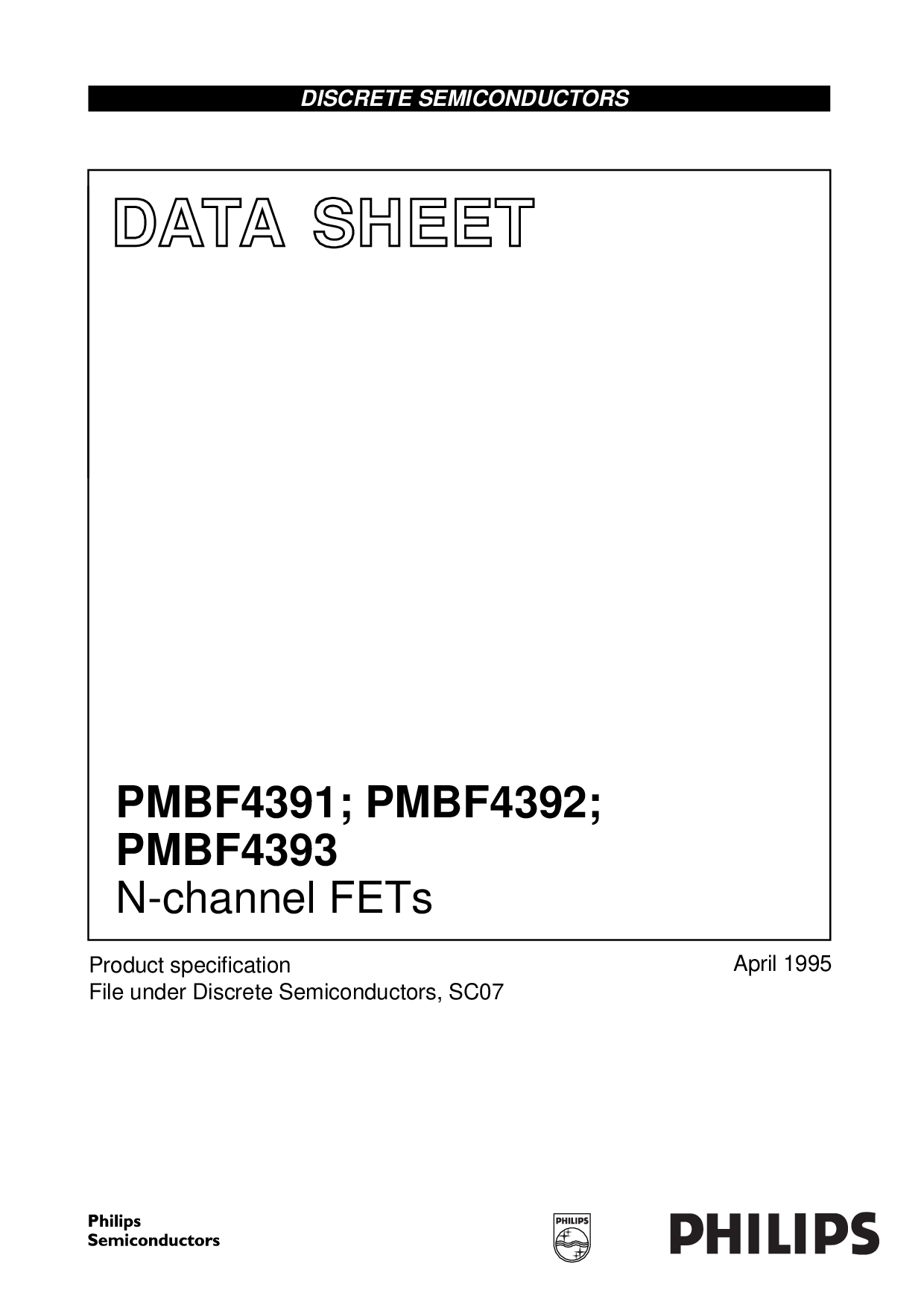 dat一个shEET 产品 Speci 文件 下 离散 半导体, sc07 april 1995 离散 半导体 pmbf4391; pmbf4392; PMBF4393 n通道 fets | |